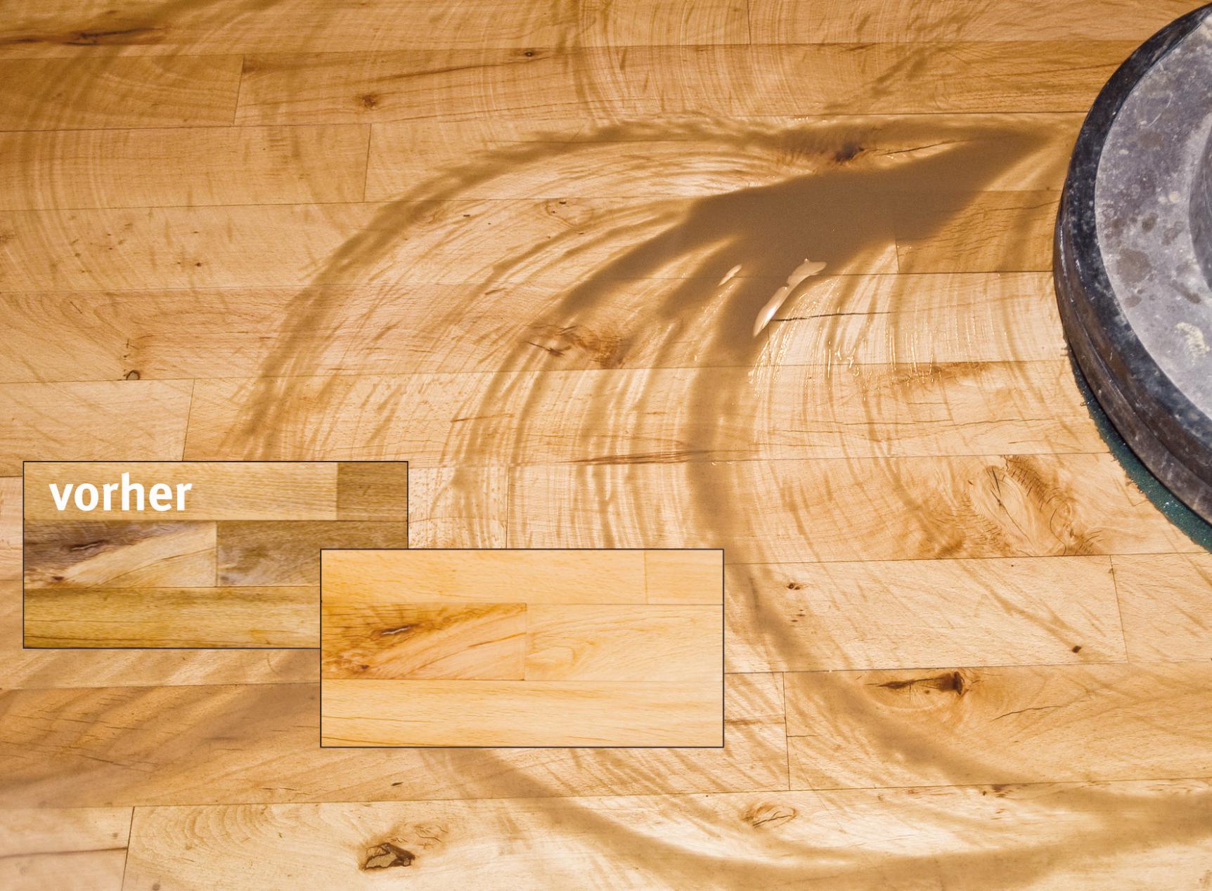 Přibližně po jedné hodině sušení se postup opakuje s jednou tenkou vrstvou Pečujícího oleje 285. Očištěná a ošetřená přírodní dřevěná podlaha se bude svítit ve zcela novém světle. Bezprašné, rychlé a relativně levné čištění můžete používat opakovaně a podle potřeby i velmi často. Na rozdíl od broušení a přelakování lze toto olejové mytí používat i místně jen na ošetření a očištění vyšlapaných cestiček. Přírodní olejovaná dřevěná podlaha bude rychle zpět ve vrcholné formě a bude svítit a vonět novotou.