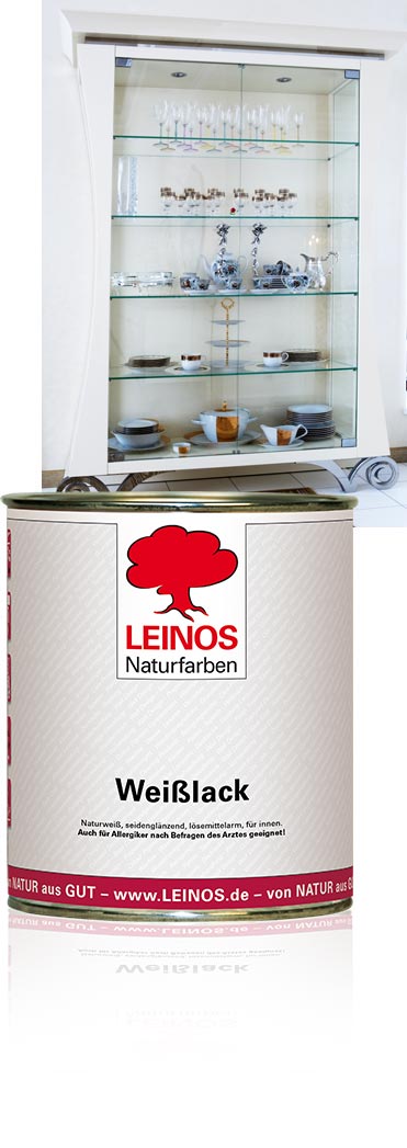 Hochdeckender, seidenglänzender Weißlack zur Behandlung von Holz und Metall im Innenbereich.
