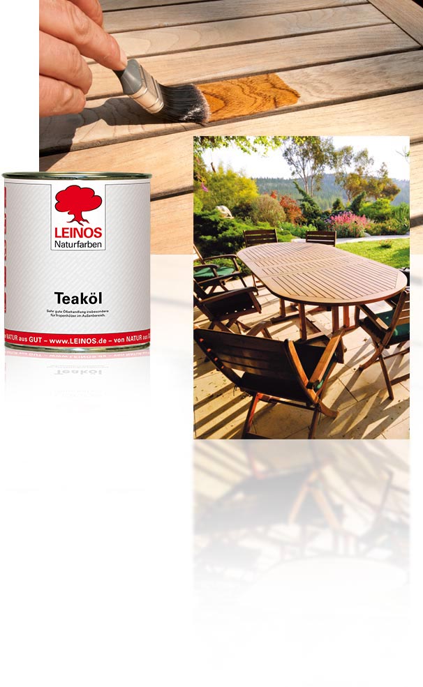 Při použití Teakového oleje LEINOS odstraníte navíc i lehké povrchové nečistoty.