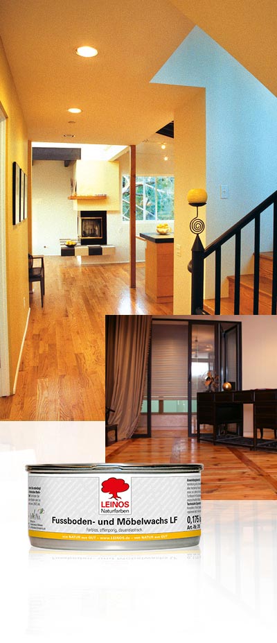 - Naneste tenkou vrstvu Přírodního vosku na podlahy a nábytek LF 310 hadříkem, který nepouští vlákna, u větších povrchů můžete použít jednokotoučový nanášecí přístroj. V zásadě musí být vosk ihned po aplikaci rovnoměrně a pečlivě rozetřen.