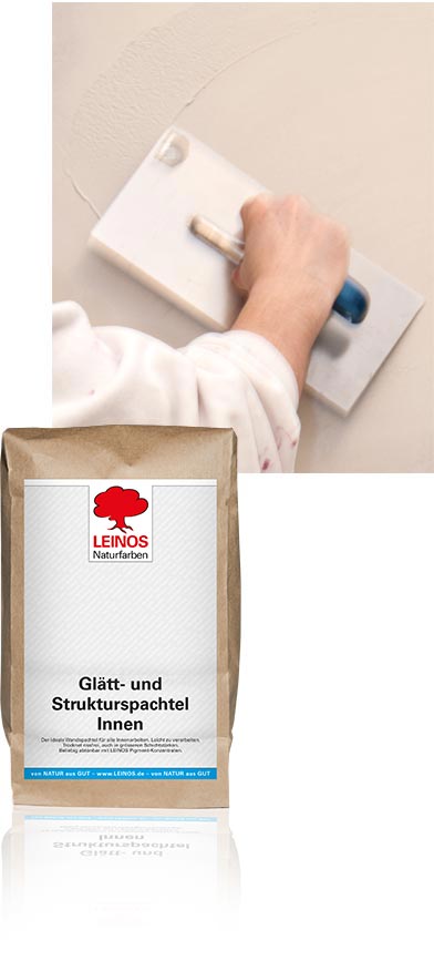 Der ideale Wandspachtel für alle Innenarbeiten. Leicht zu verarbeiten. Trocknet rissfrei, auch in grösseren Schichtstärken. Beliebig abtönbar mit LEINOS Pigment-Konzentraten.