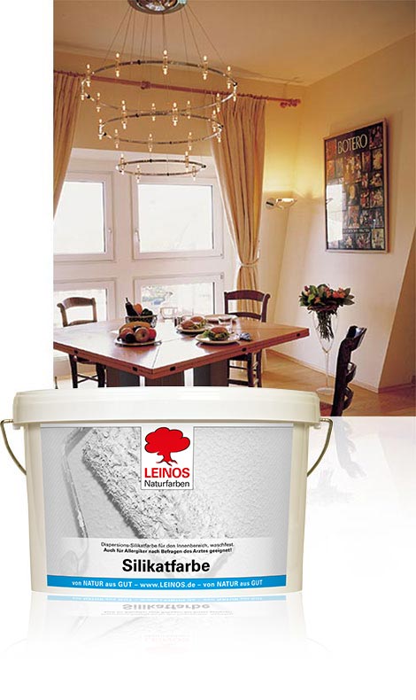 Dispersions-Silikatfarbe für alle tragfähigen Wand- und Deckenflächen im Innenbereich, ausgenommen Lack- und Latexanstriche.